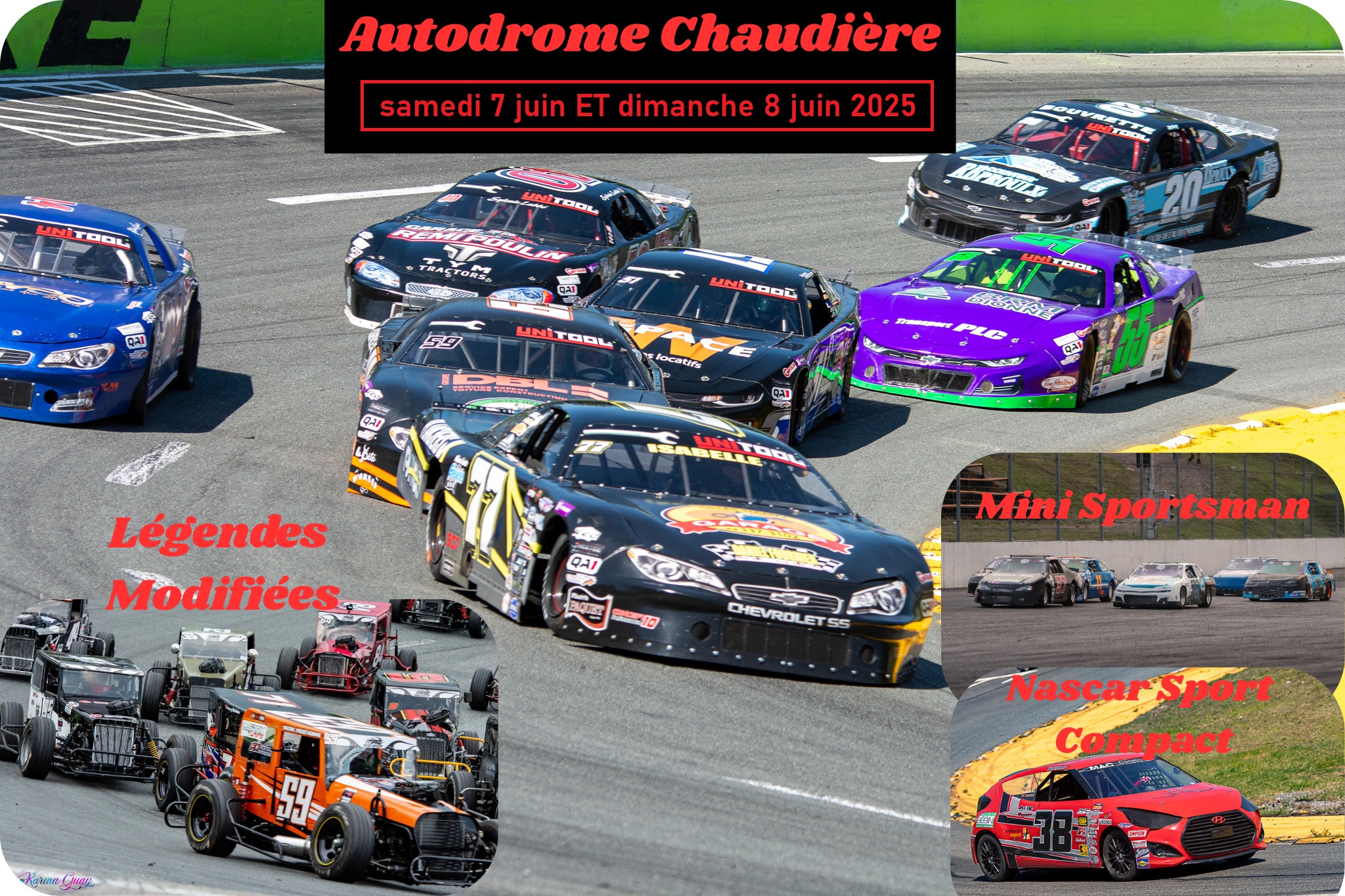 L’Autodrome Chaudière vous convie ce weekend à 2 journées de courses automobiles où vous pourrez apercevoir les catégories suivantes : Nascar Sportsman, Nascar Truck, Légendes Modifiées, Nascar Sport Compact Sénior, Nascar Sport Compact Développement et les Mini Sportsman Développement & Élite.